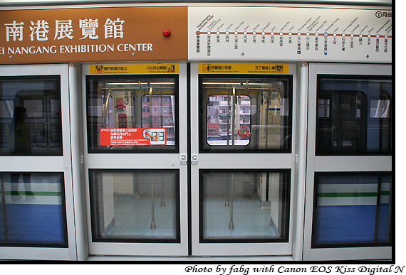港展覽館的列車,就在準備離開執行迴車時,就發生車門故障的情形。此時