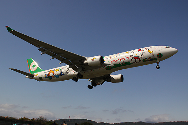 A330-300是兩國籍業者於松山—羽田航線的共通機種,圖為長榮航空A330-300、Hello Kitty魔法主題彩繪機