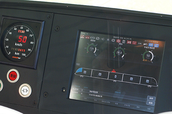 以及必要的監控儀錶。新一代的輕軌列車中,中間的螢幕變為整合式觸控