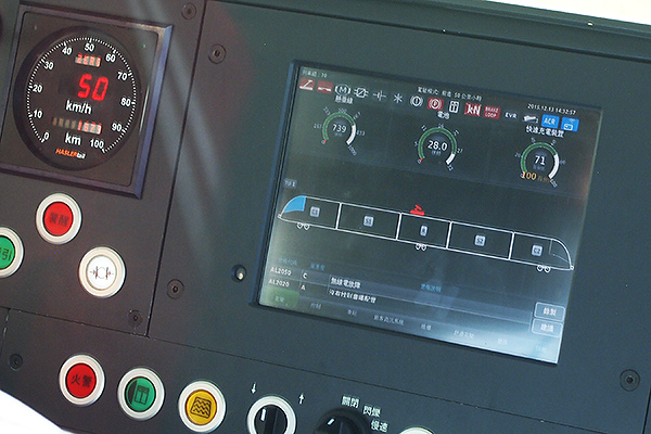 面板,列車駕駛可以透過中間的面板監看、或者設定不同的系統功能。但