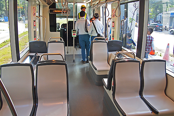 輕軌行駛時,因為加速有平穩的加、減速,讓試乘的民眾都覺得輕軌列車