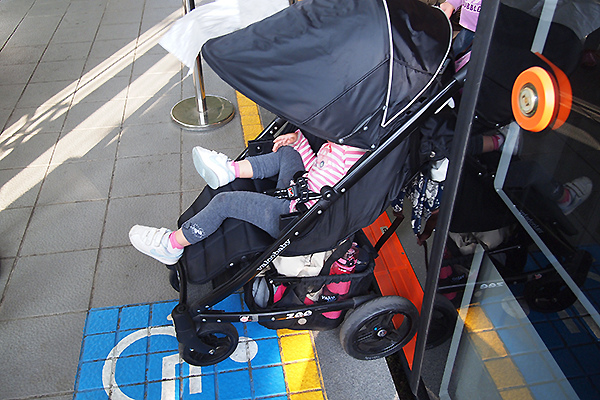 沒有轉向架,所以車廂內寬度不會收窄,因此輪椅與娃娃車空間也設置於