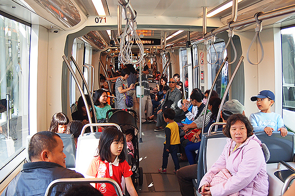公園讓大家試乘,成為臺灣第一條「實際公開載客運轉」的輕軌系統。