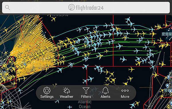 越大西洋的航班,是在初期就放入衛星訊號的監測範圍。(圖片來源:FlightRadar24)